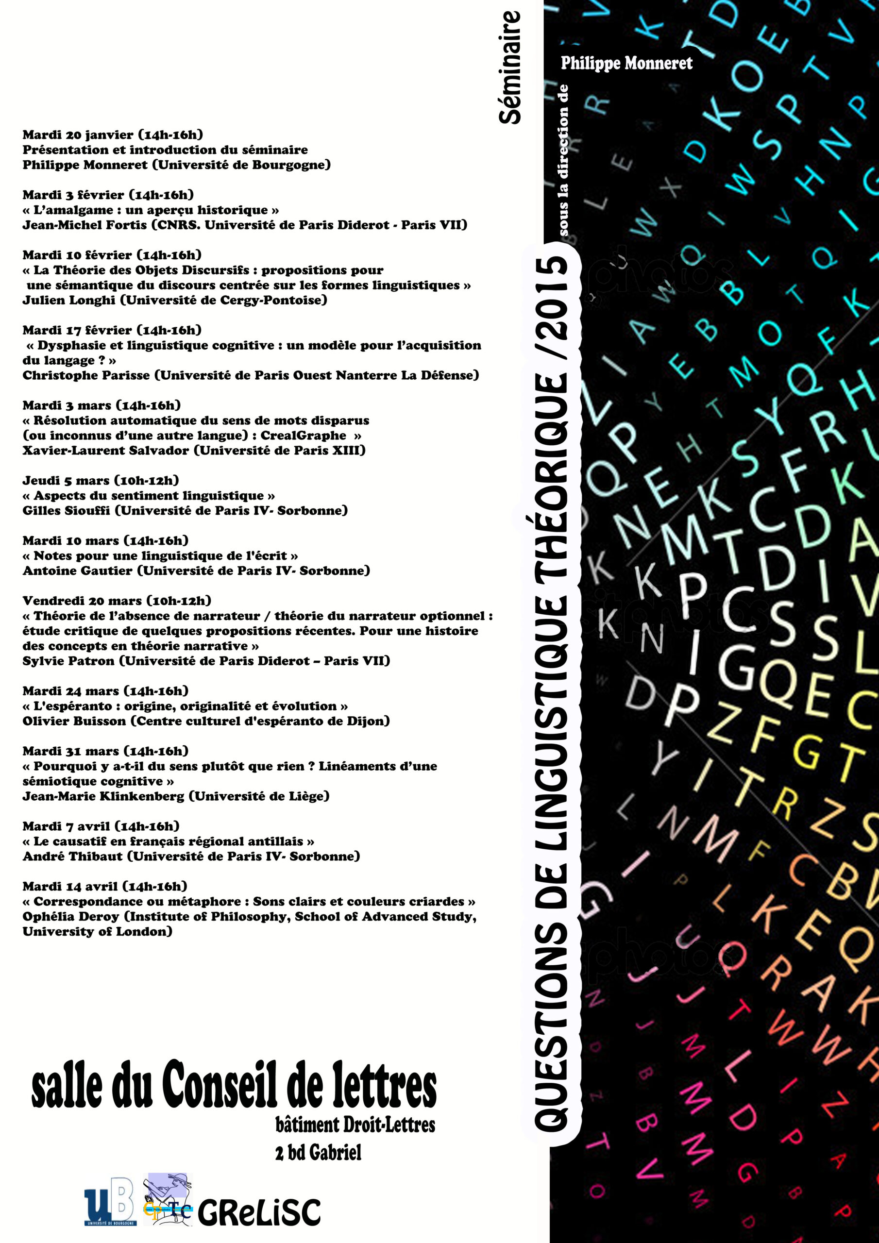 Séminaires Séminaire linguistique. « Questions de linguistique théorique » 2015